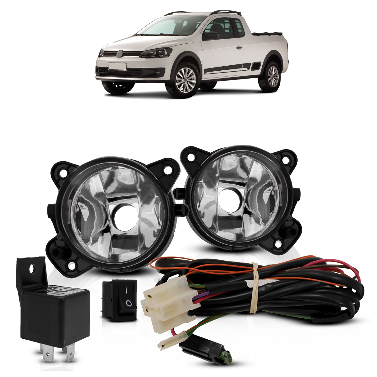 Kit Farol De Milha Auxiliar Saveiro G6 2013 A 2016 Trend Trooper Botão Universal BR295